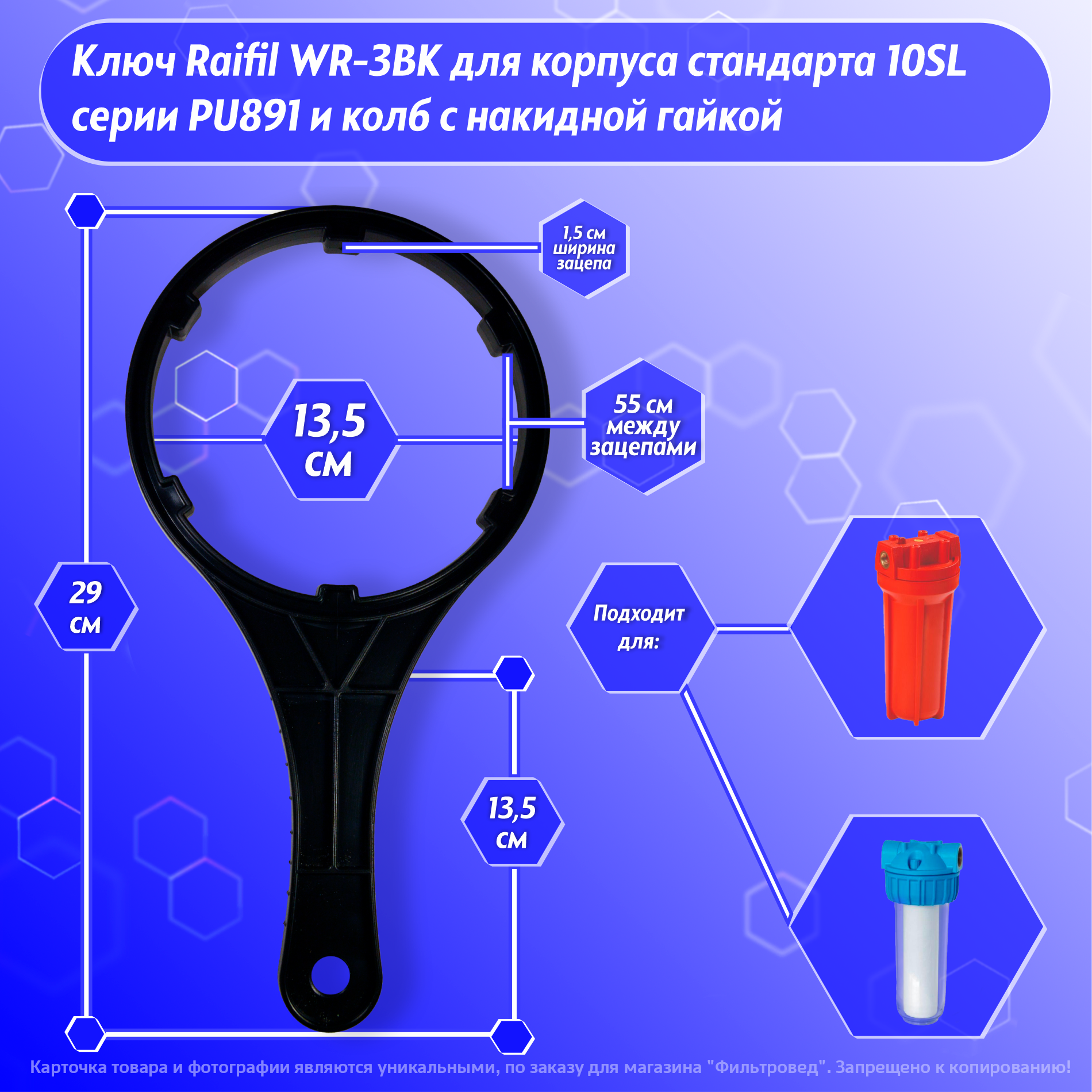 Ключ Raifil WR-3BK для корпуса ( Колбы) стандарта 10SL серии PU 891 и колб с накидной гайкой интересное: