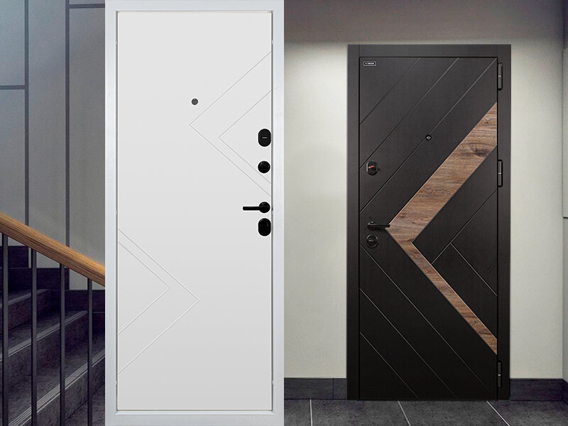 Входные двери Спарта Чёрный Кварц, дуб бомонт лофт/ Белый матовый, 950x2030 / Правое интересное: