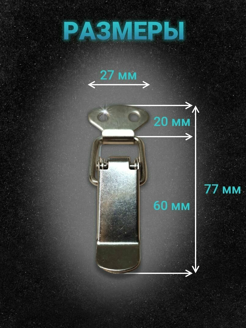 Замок защелка, замок лягушка с пружинным фиксатором 27х77мм 2шт для ящиков, боксов, чемоданов, сундуков (хром) интересное: