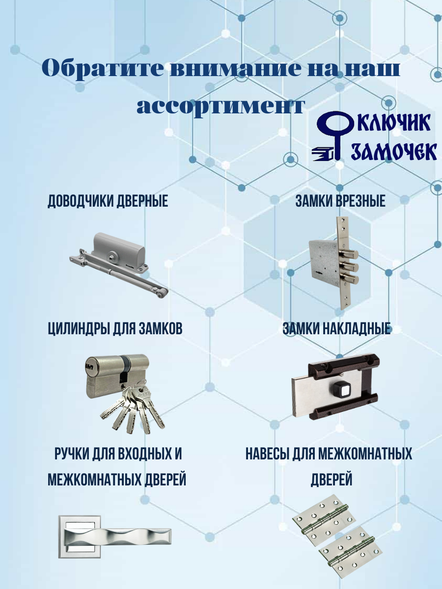 | Подробная комплектация | Ответная планка, декоративная заглушка и крепежная фурнитура в цвет изделия. |