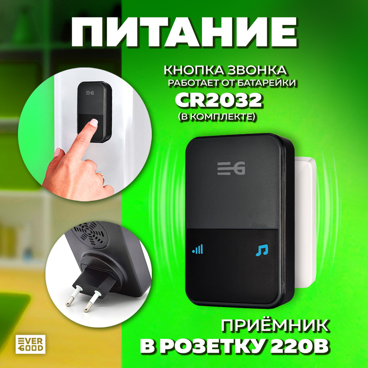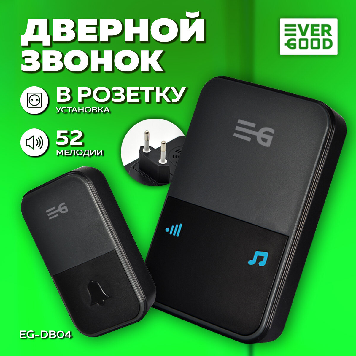 Звонок беспроводной дверной в розетку от сети 220В EG-DB04 EVERGOOD интересное:
