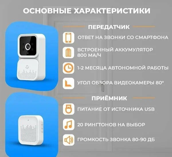 Дверной звонок беспроводной GCL, умный дверной звонок, видеозвонок в квартиру, ночное видение, уведомления смартфон, квадратная кнопка интересное: