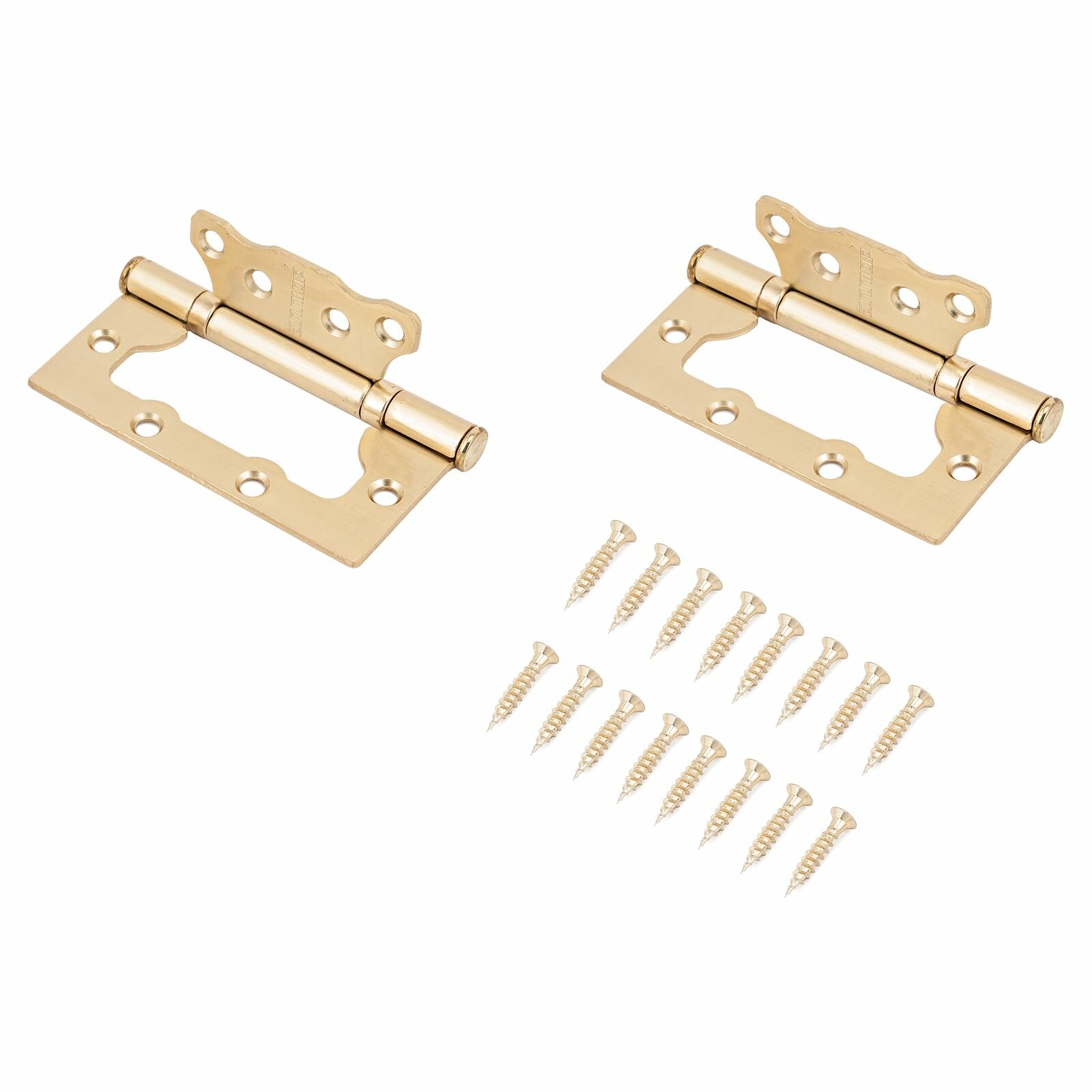 Купить Петли дверные бабочка накладные без врезки 2 шт аллюр 100х75 2,5мм, цвет матовое золото