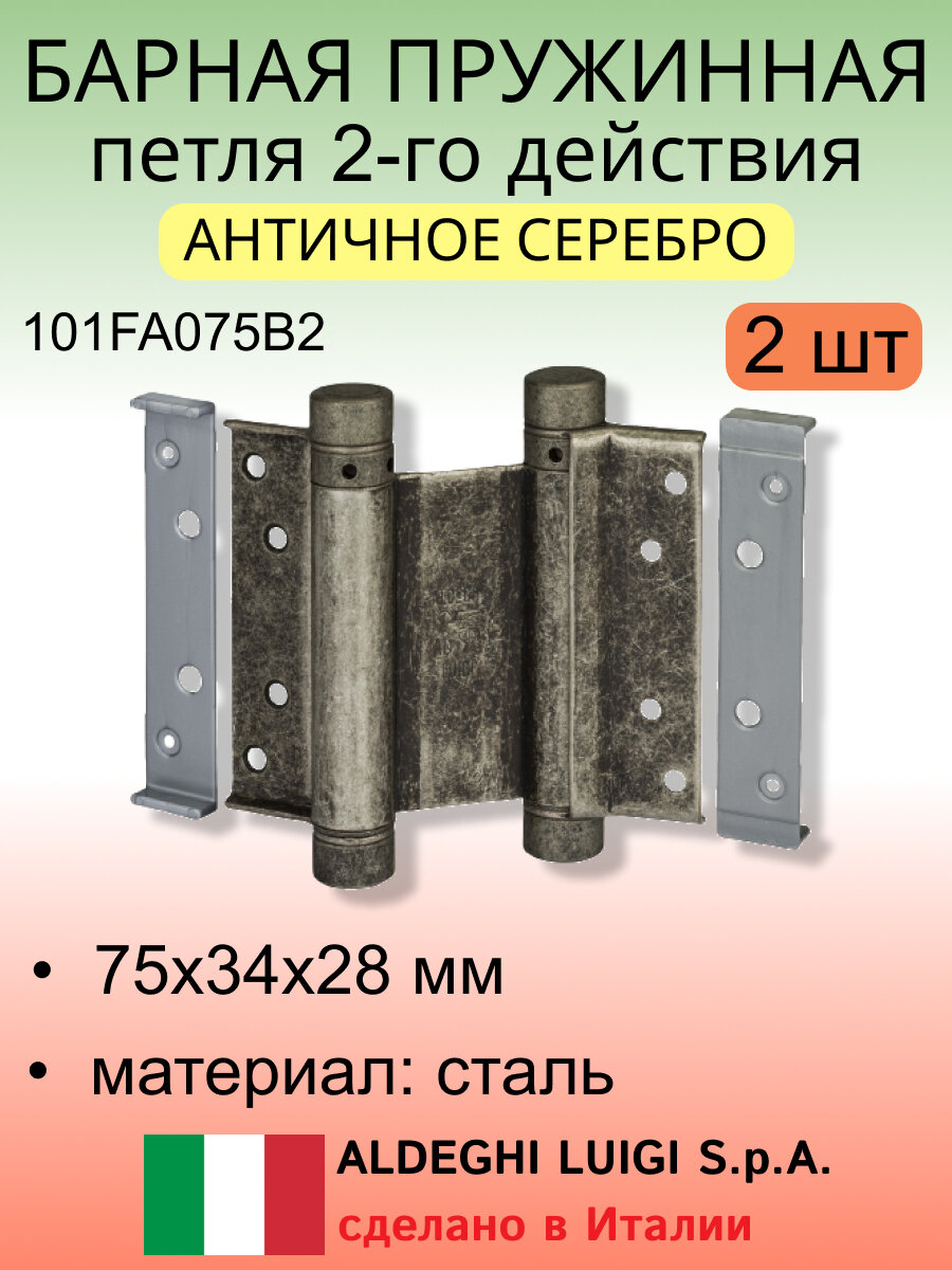 СохранитьБарная пружинная петля двойного действия ALDEGHI LUIGI SPA 75х34х28 мм, цвет: античное серебро, к-т: 2 шт+ключ с декоративными заглушками 101FA075B2 интересное: