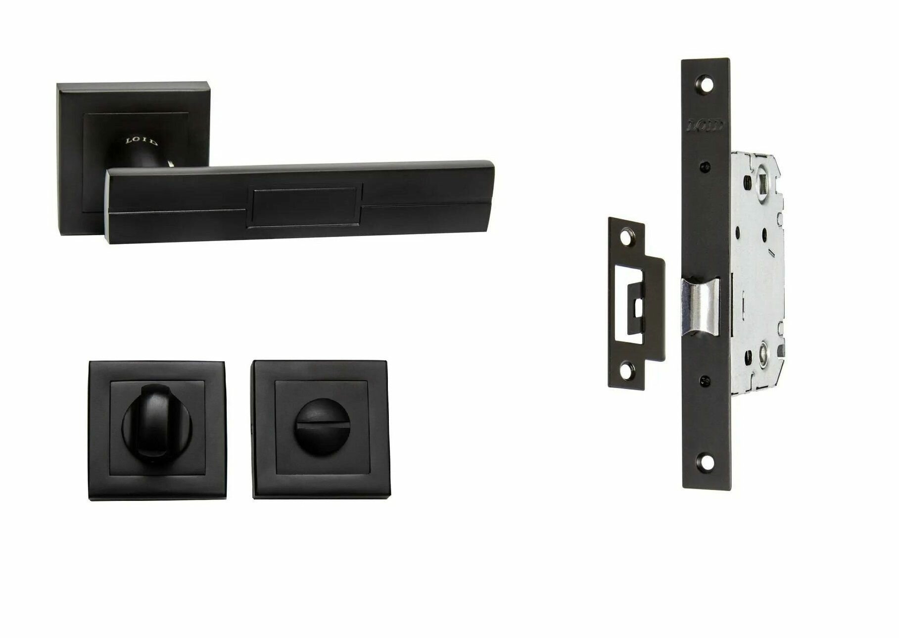 Ручка дверная межкомнатная Loid 430 BL + замок M-2055 B BL + завертка квадратная BL черный