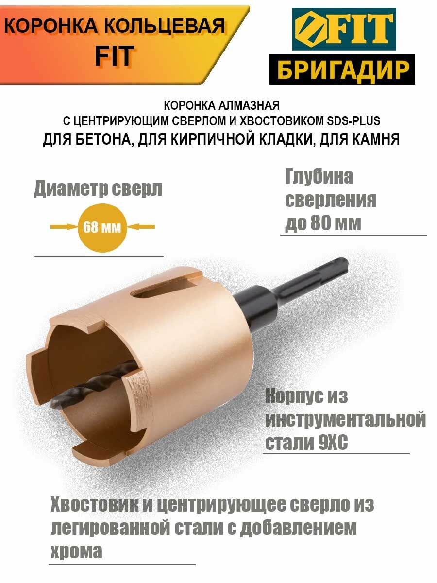 Коронка кольцевая по бетону алмазная в сборе 68 мм FIT IT (33485) интересное:
