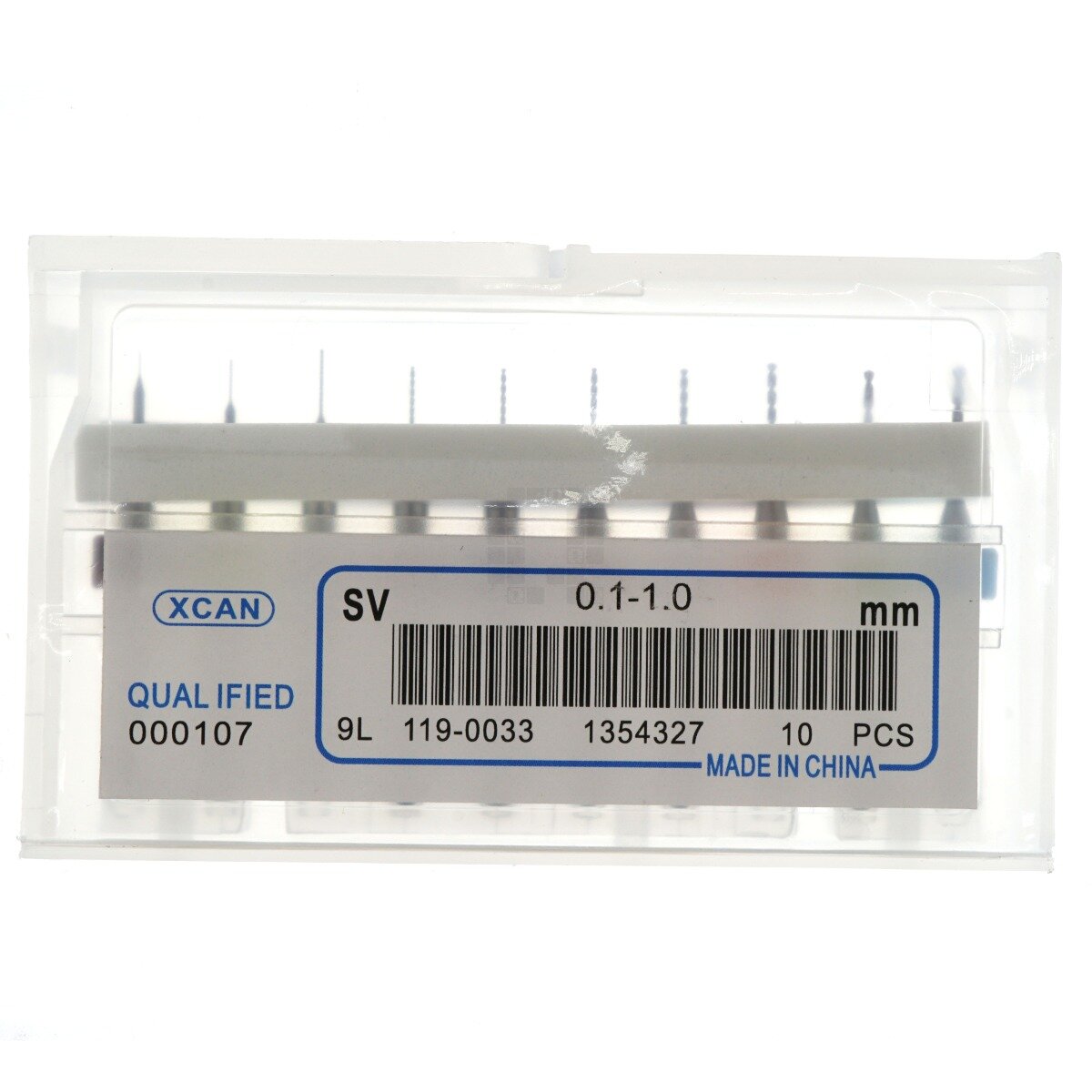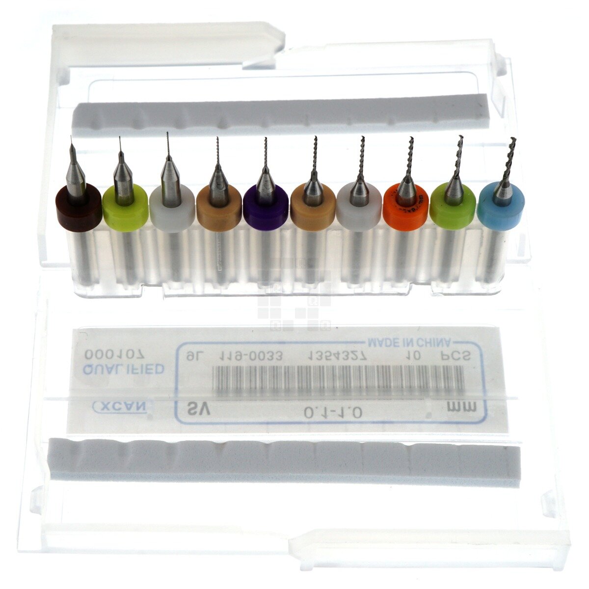 Набор твердосплавных сверл 0.1-1.0 мм для печатных плат (PCB Drills), 10 шт, XCAN, 1 уп.