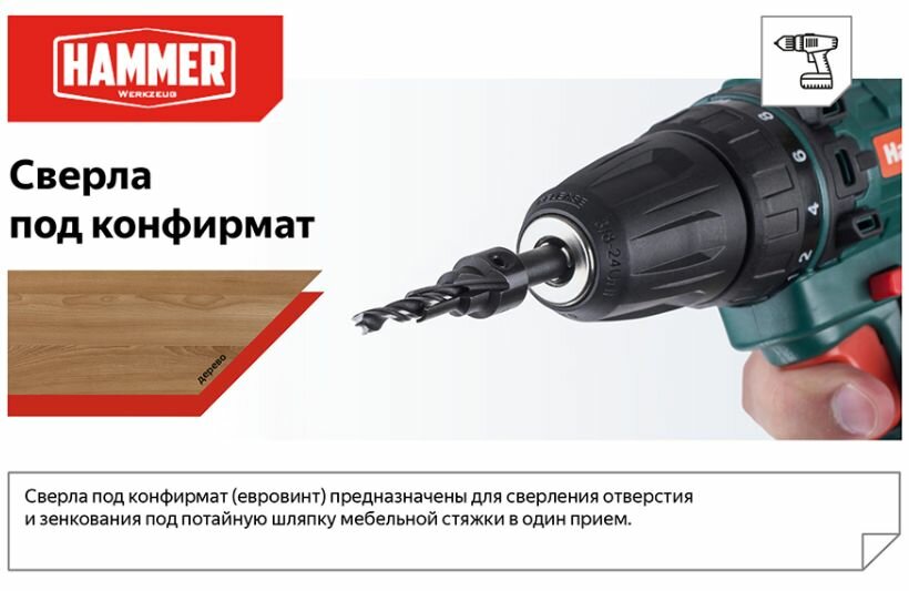 Сверло под конфирмат Hammer Flex 202-274 DR WD DBL FLUTE 5мм*50мм, зенкер 11мм, евровинт 7мм интересное: