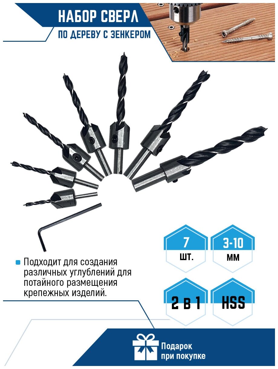 | Количество сверл по дереву | 7 шт. |