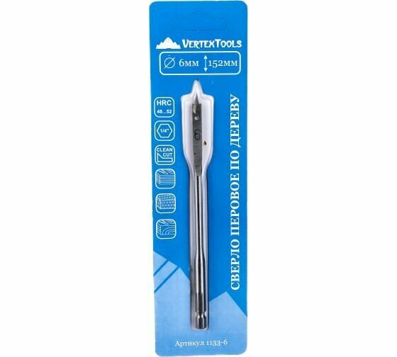 Купить Сверло перьевое по дереву VertexTools 6x152 мм с шестигранным хвостовиком