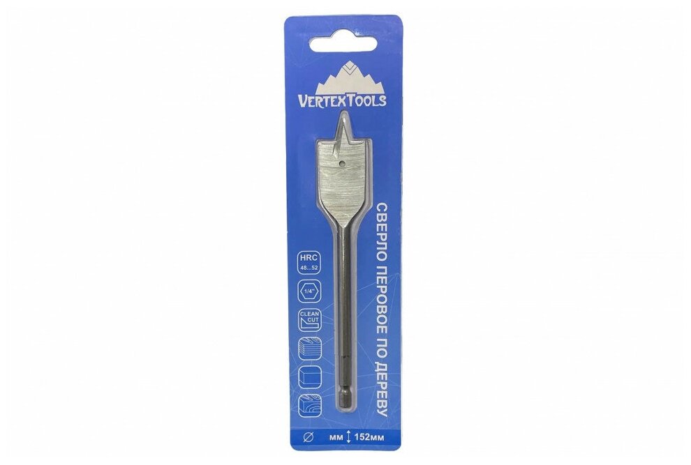 Сверло перьевое по дереву VertexTools 25x152 мм с шестигранным хвостовиком