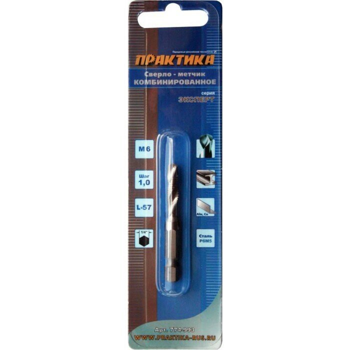 Купить Сверло метчик ПРАКТИКА М6 шаг 1,0, длина 57 мм, хвостовик HEX 1/4',