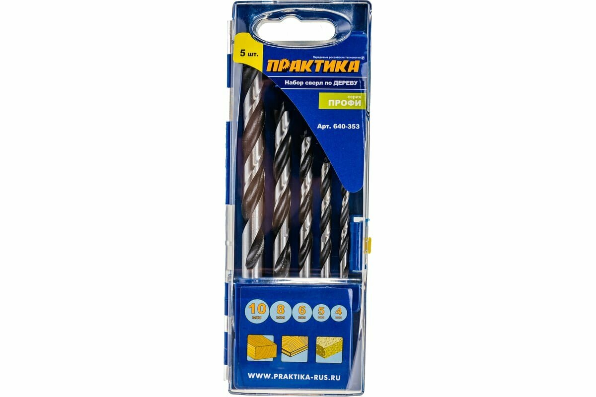 Купить Набор сверл по дереву ПРАКТИКА "Профи", 5 шт, 4, 5, 6, 8, 10 мм, про кассета (640-353)
