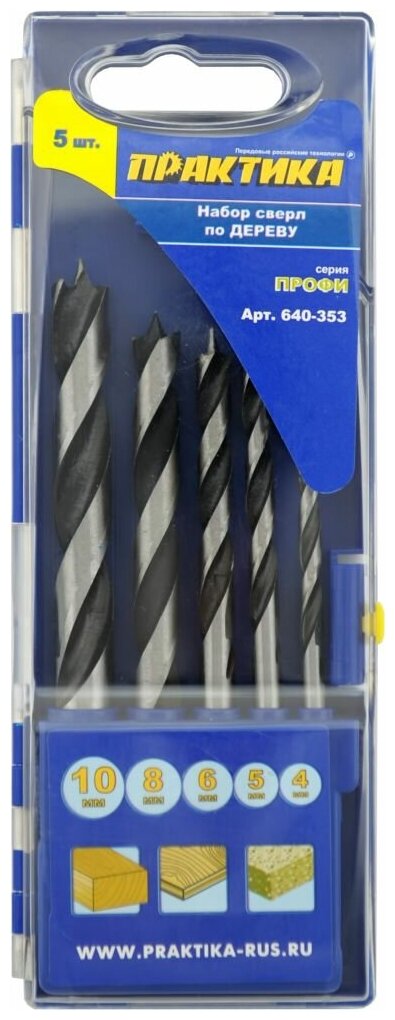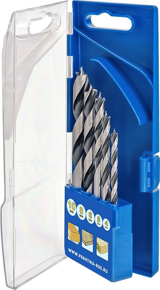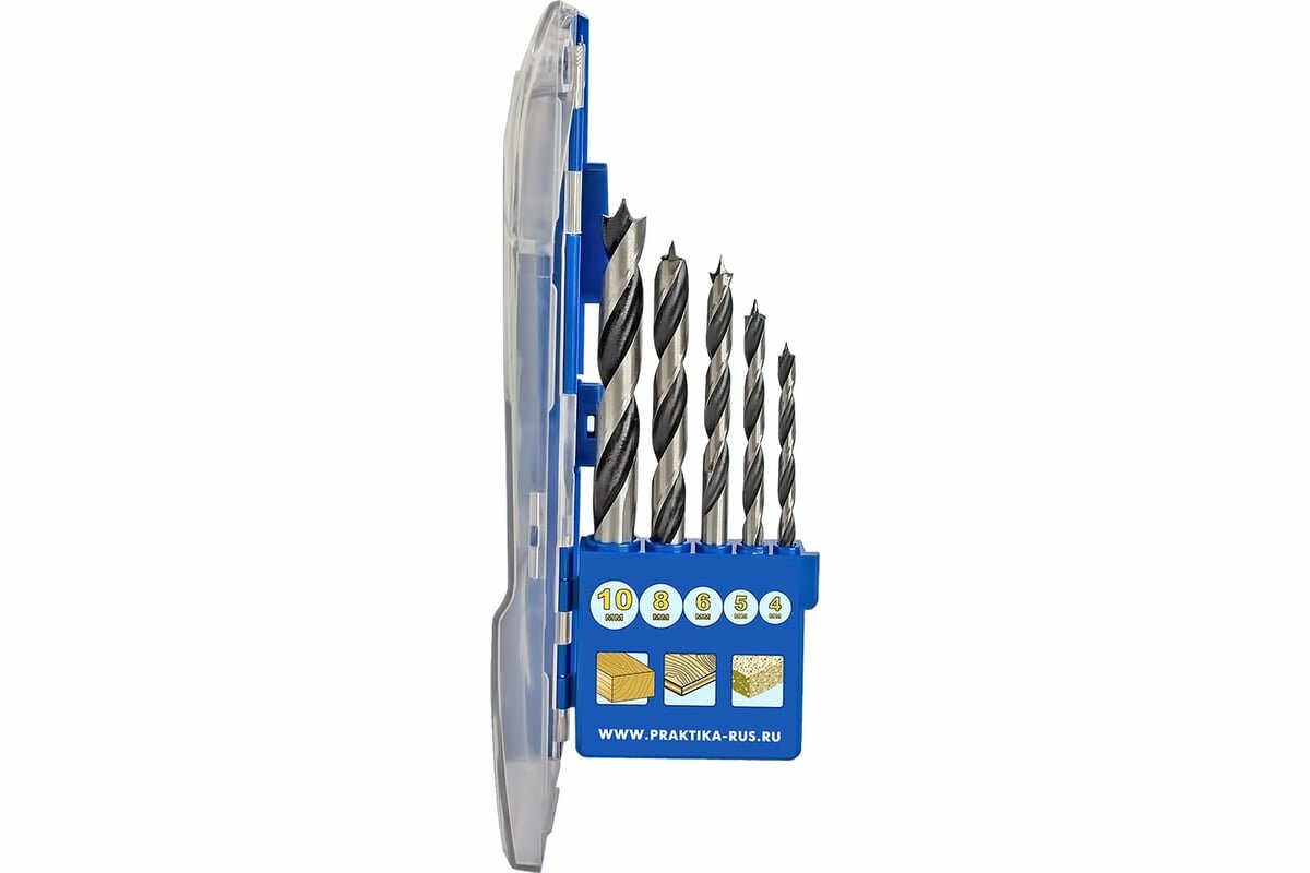 Набор сверл по дереву ПРАКТИКА "Профи", 5 шт, 4, 5, 6, 8, 10 мм, про кассета (640-353) интересное: