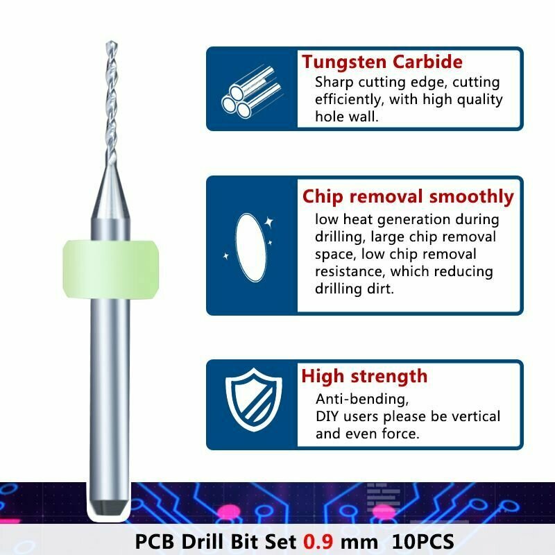 Купить Набор сверл спиральных XCAN для печатных плат 0,9 мм, 10 шт.