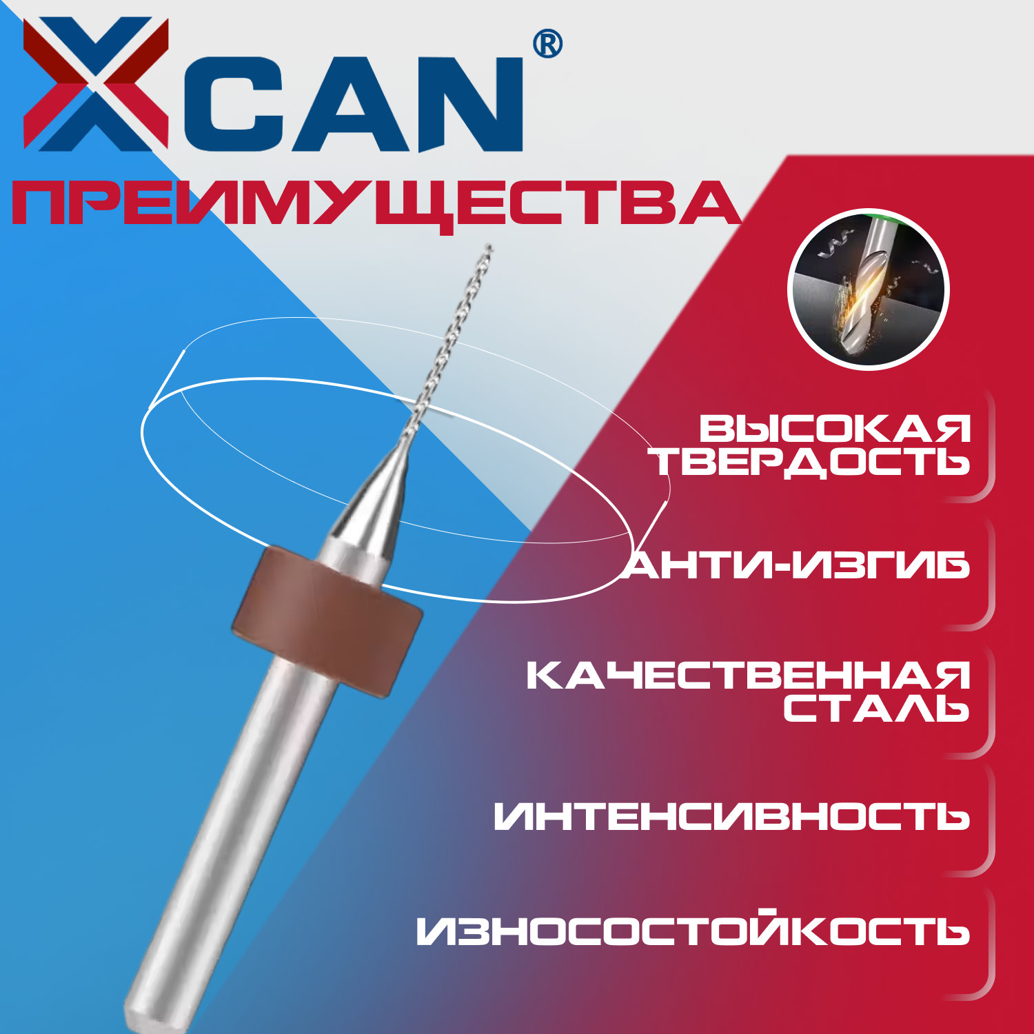 Набор сверл спиральных XCAN для печатных плат, размер 3,175х2,5х38 мм, 10 шт.