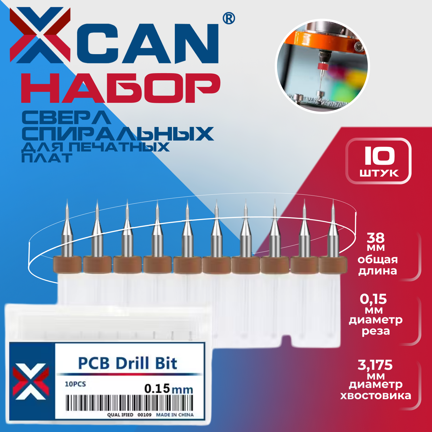 Купить Набор сверл спиральных XCAN для печатных плат 0,15 мм, 10 шт.