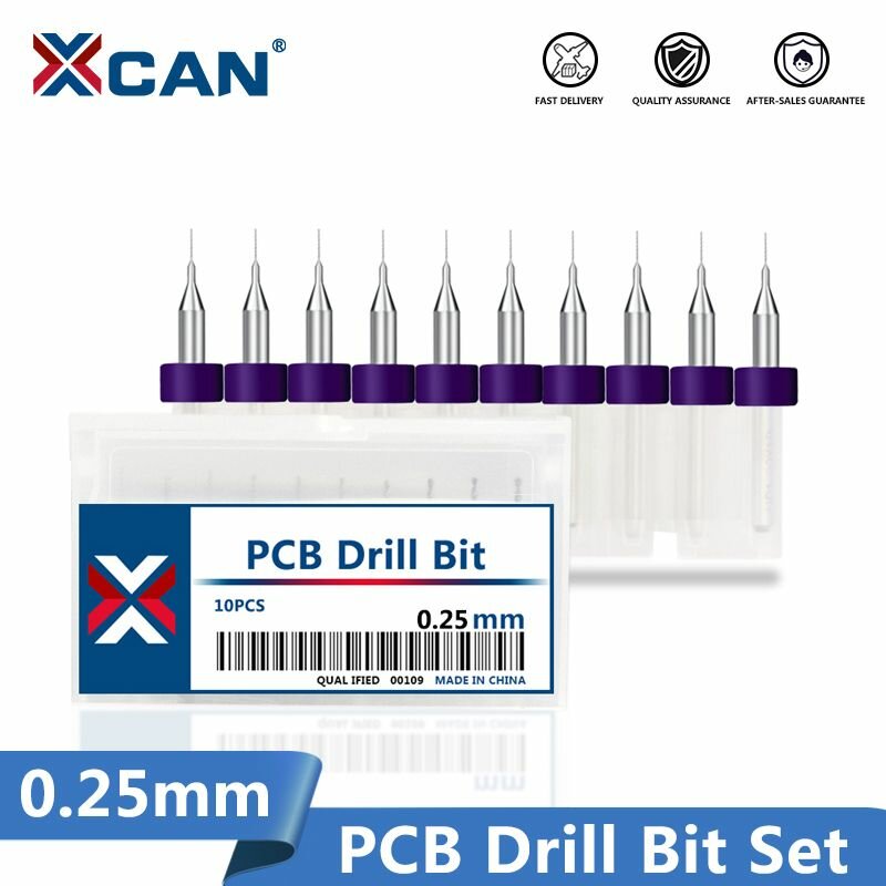 Купить Набор сверл спиральных XCAN для печатных плат 0,25 мм, 10 шт.