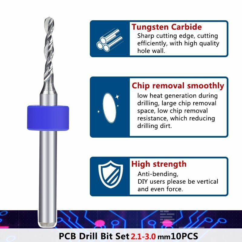 Набор сверл спиральных XCAN для печатных плат 3,0 мм, 10 шт.