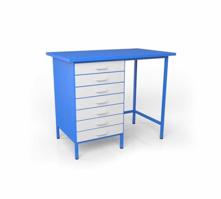 Стол металлический Metalex 750х1400х600 с выдвижными ящиками и перфопанелью