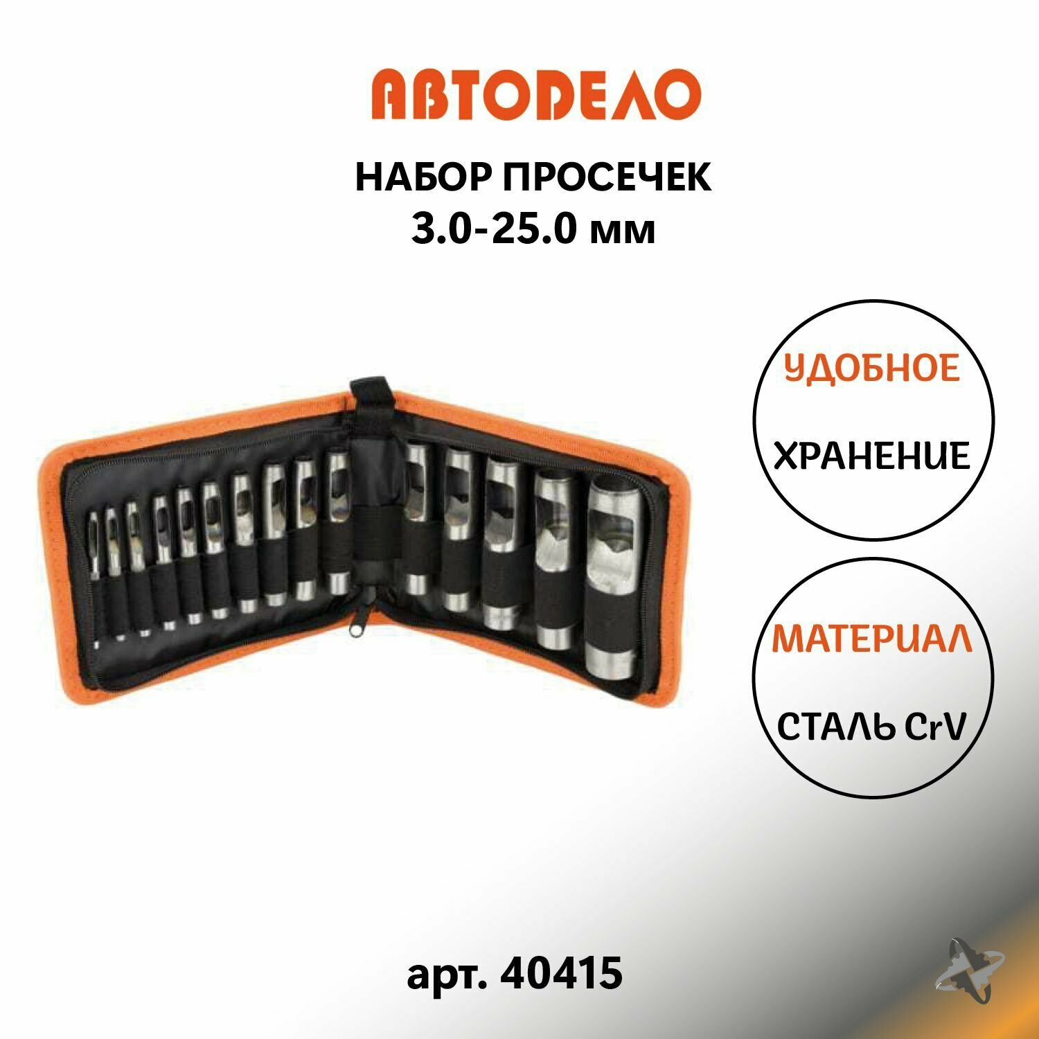Купить Высечки, АвтоDело, 15 предметов 3,0-25,0 мм, сумка, 40415