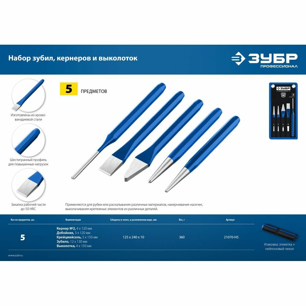 ЗУБР Профессионал набор зубил и кернеров в чехле, 5 предметов (21070-H5)