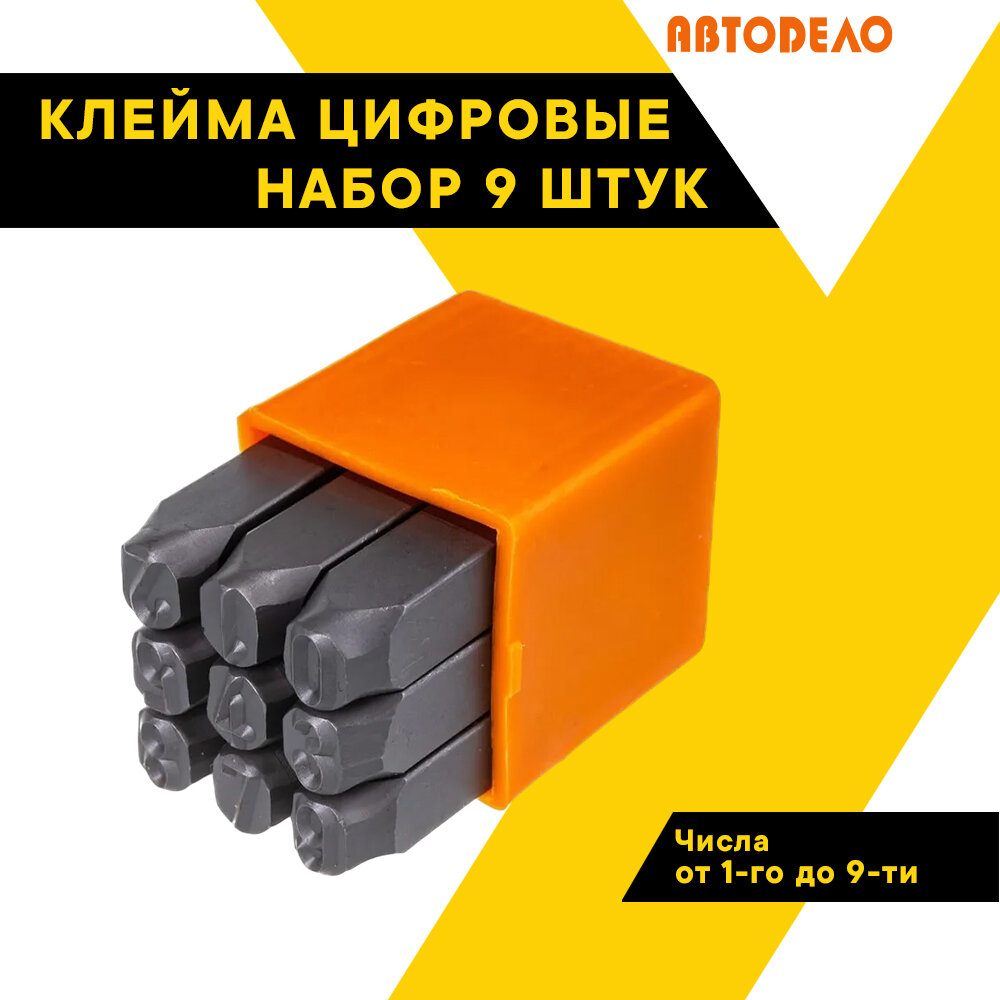 Купить Клейма цифровые набор 9 шт, 5мм , "Автодело", повышенной твердости, в чехле, 40585