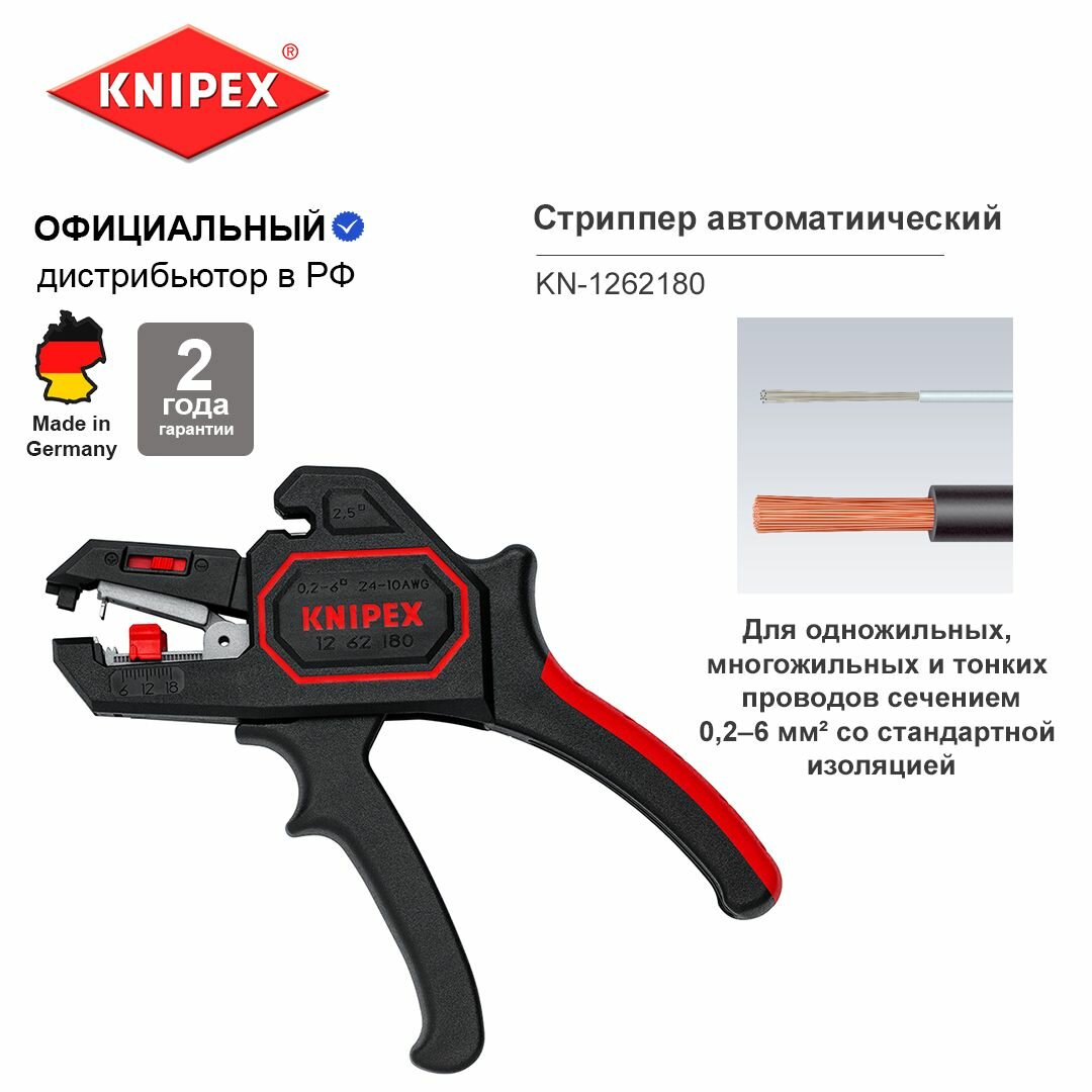 Стриппер KNIPEX автоматический, d 0.2-6 кв.мм AWG 24-10, 195 мм KN-1262180 интересное: