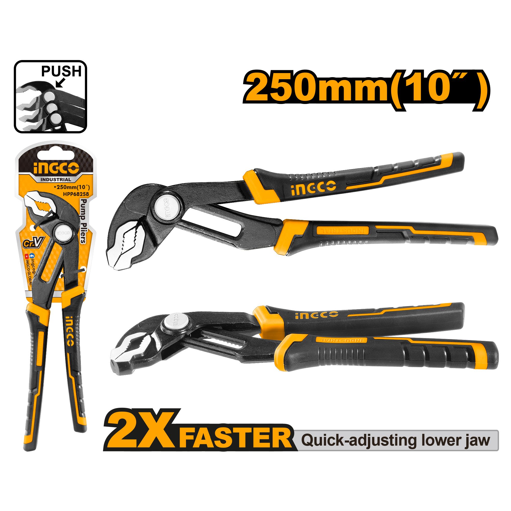 Купить Клещи переставные с кнопкой INGCO HPP68258 INDUSTRIAL 250 мм