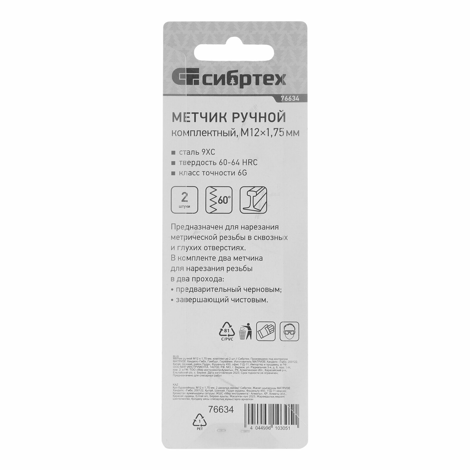 СохранитьМетчик ручной М12 х 1.75 мм, комплект из 2 шт Сибртех интересное: