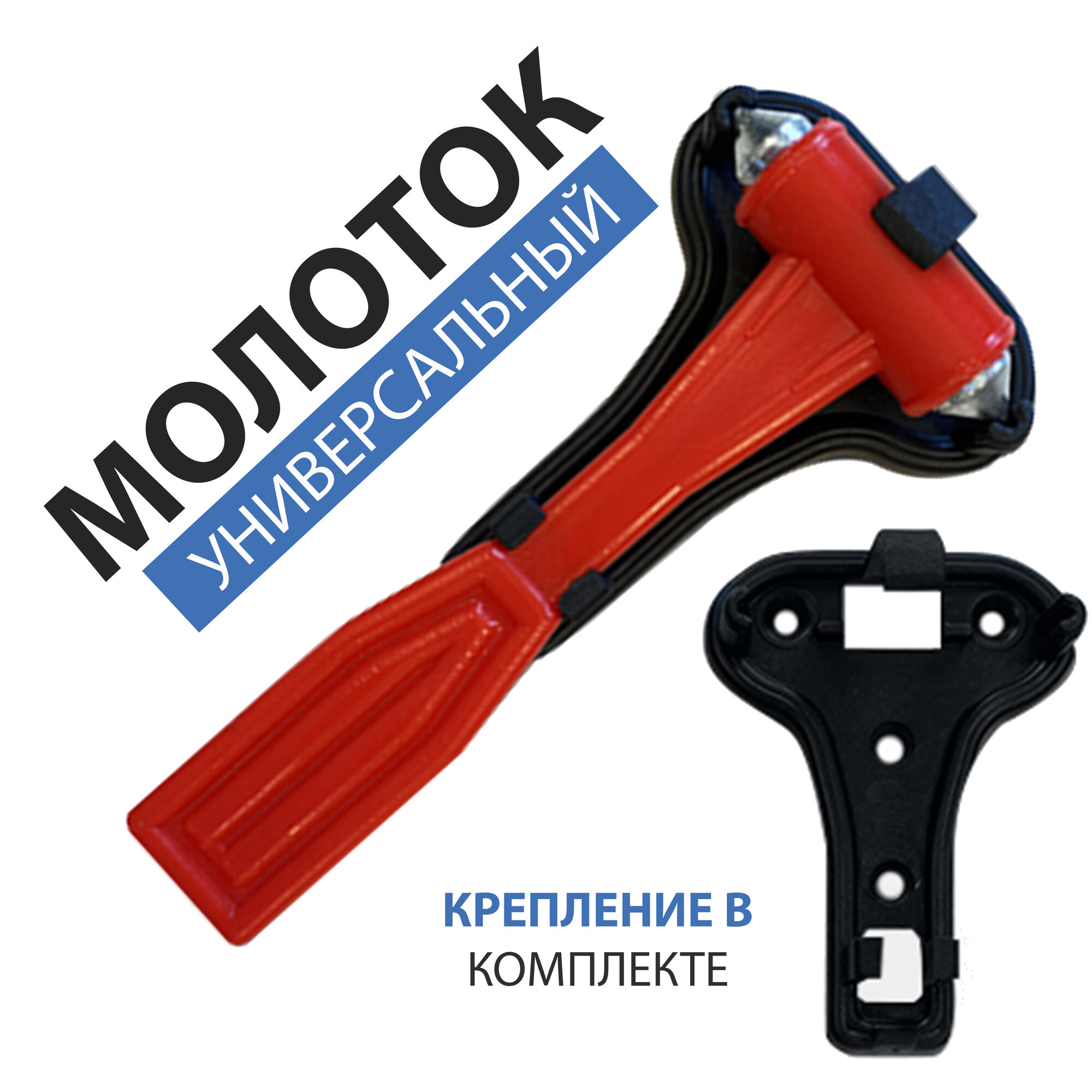 Молоток аварийный двухсторонний с креплением (L145 мм, 55 мм, Р/П), для разбивания стекла. интересное: