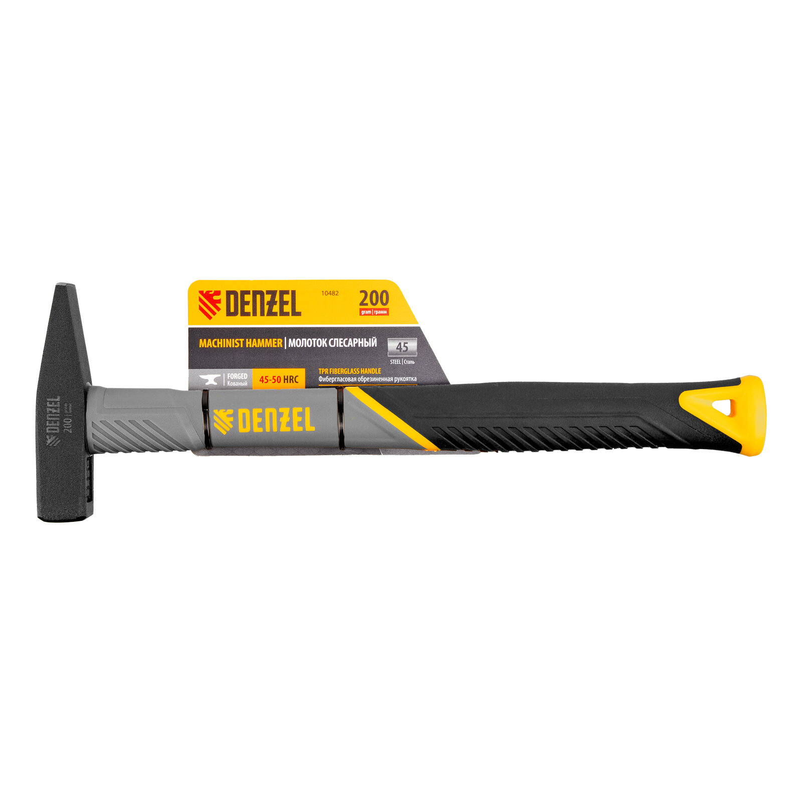 Молоток слесарный, 200 г, кованый, фибергласовая рукоятка c TPR покрытием Denzel