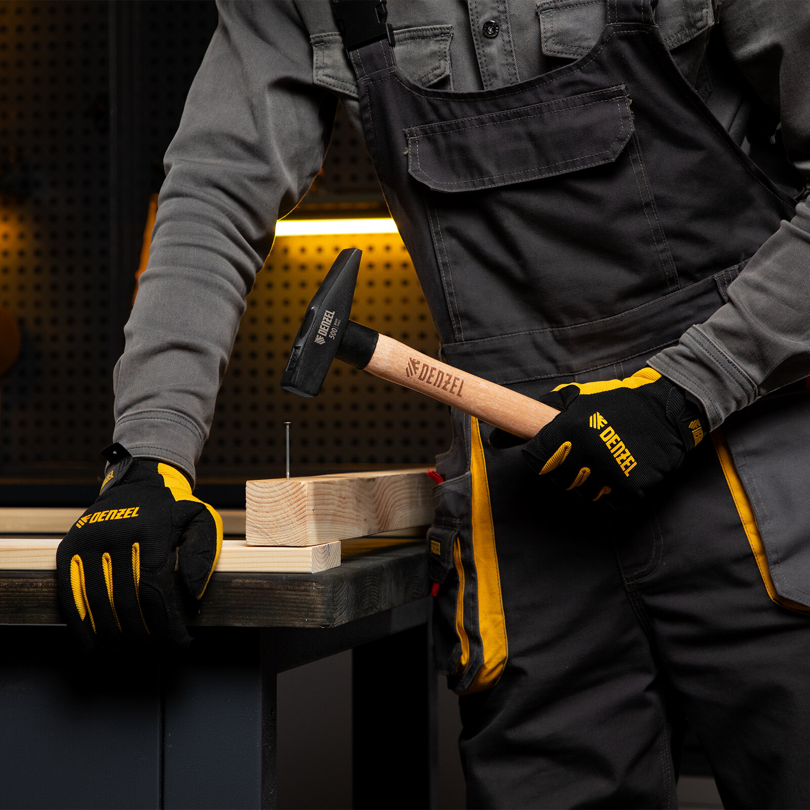 Молоток слесарный Denzel 500 г, кованый, фибергласовая рукоятка c TPR покрытием 10485