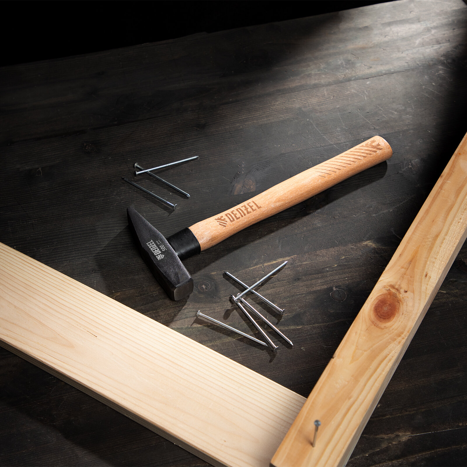 Молоток слесарный, 600 г, кованый квадратный боек, буковая рукоятка Denzel