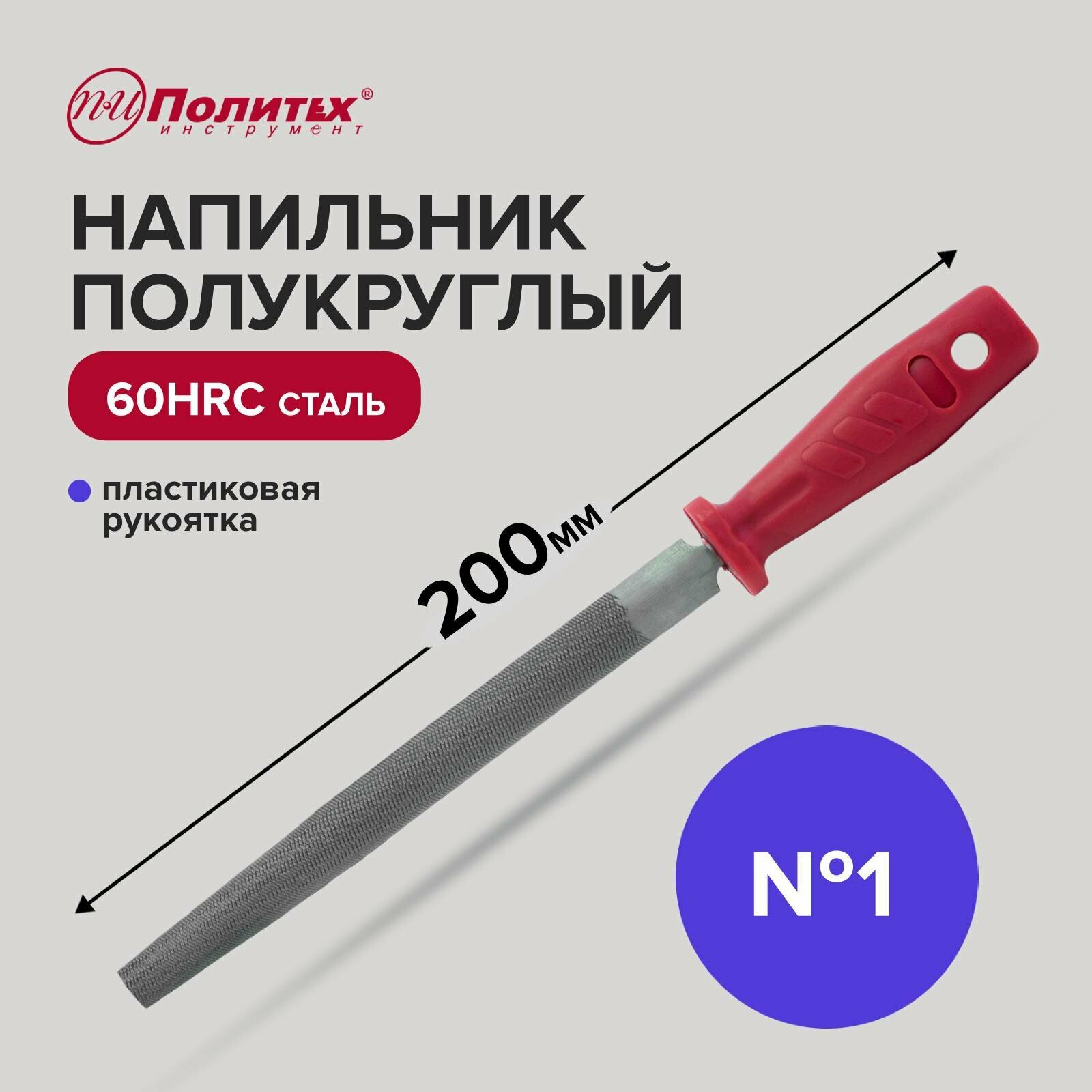 Напильник по металлу 200 мм полукруглый № 1, пластиковая рукоять, Политех Инструмент интересное: