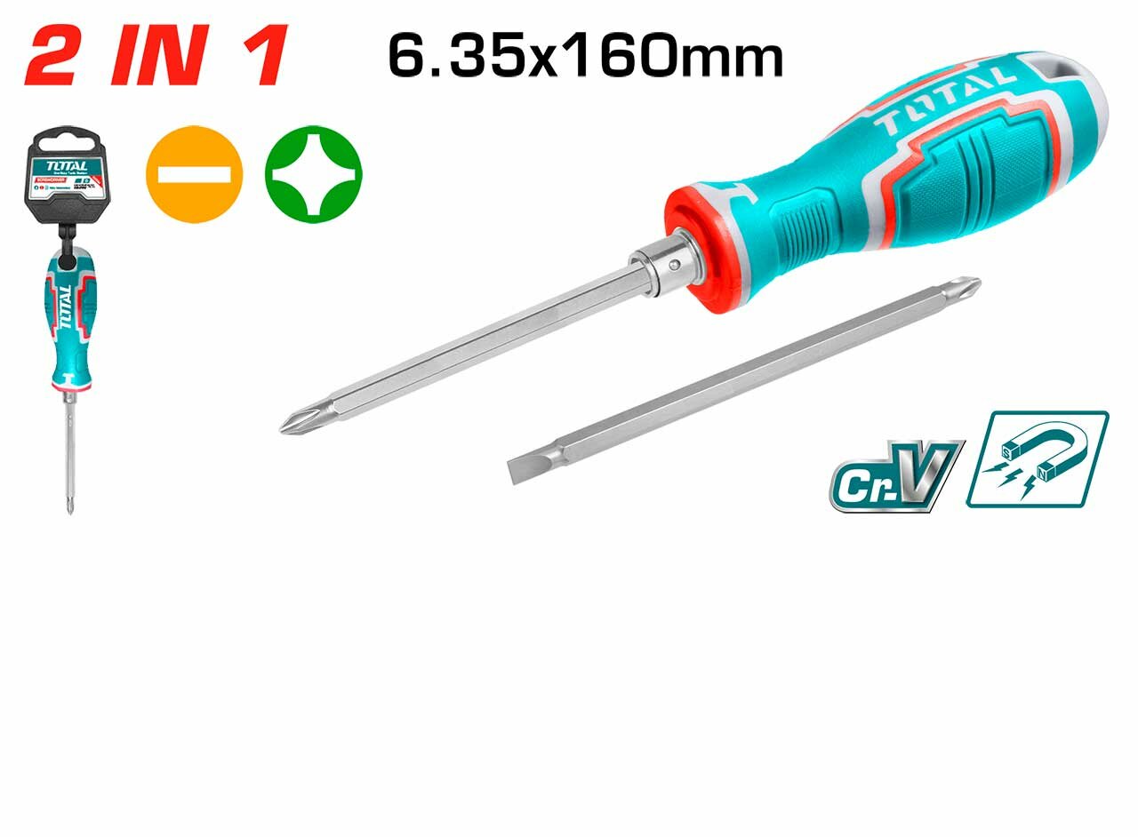 Отвертка переставная 2 в 1 160 мм TOTAL PH2+SL 6 THT250206 интересное:
