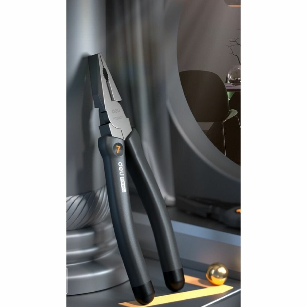 Комбинированные плоскогубцы "Home Series Black" Deli HT2007 180мм (эксклюзивный дизайн, рукоятка софттач пластик, подарочная упаковка) интересное: