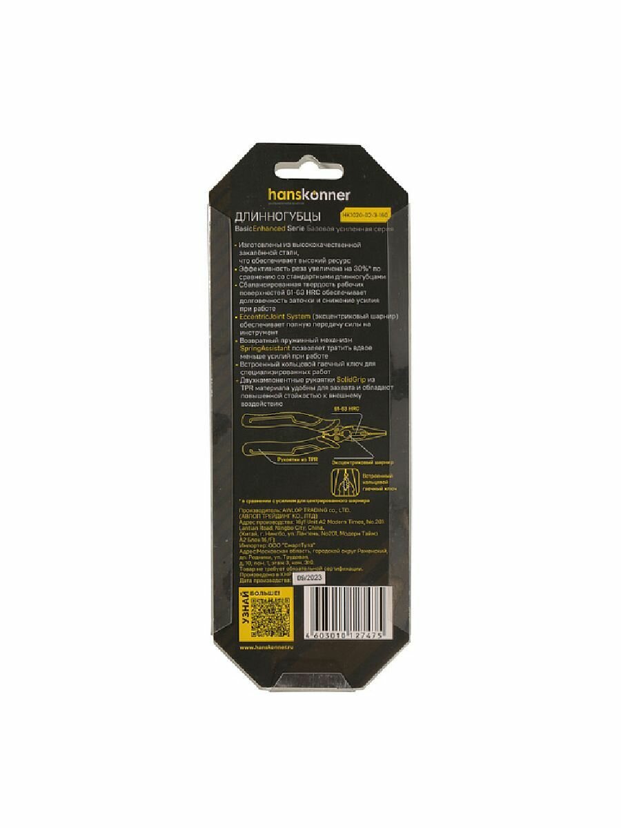 Hanskonner Длинногубцы 160мм. TPR рукоятки HK1020-02-3-160 интересное: