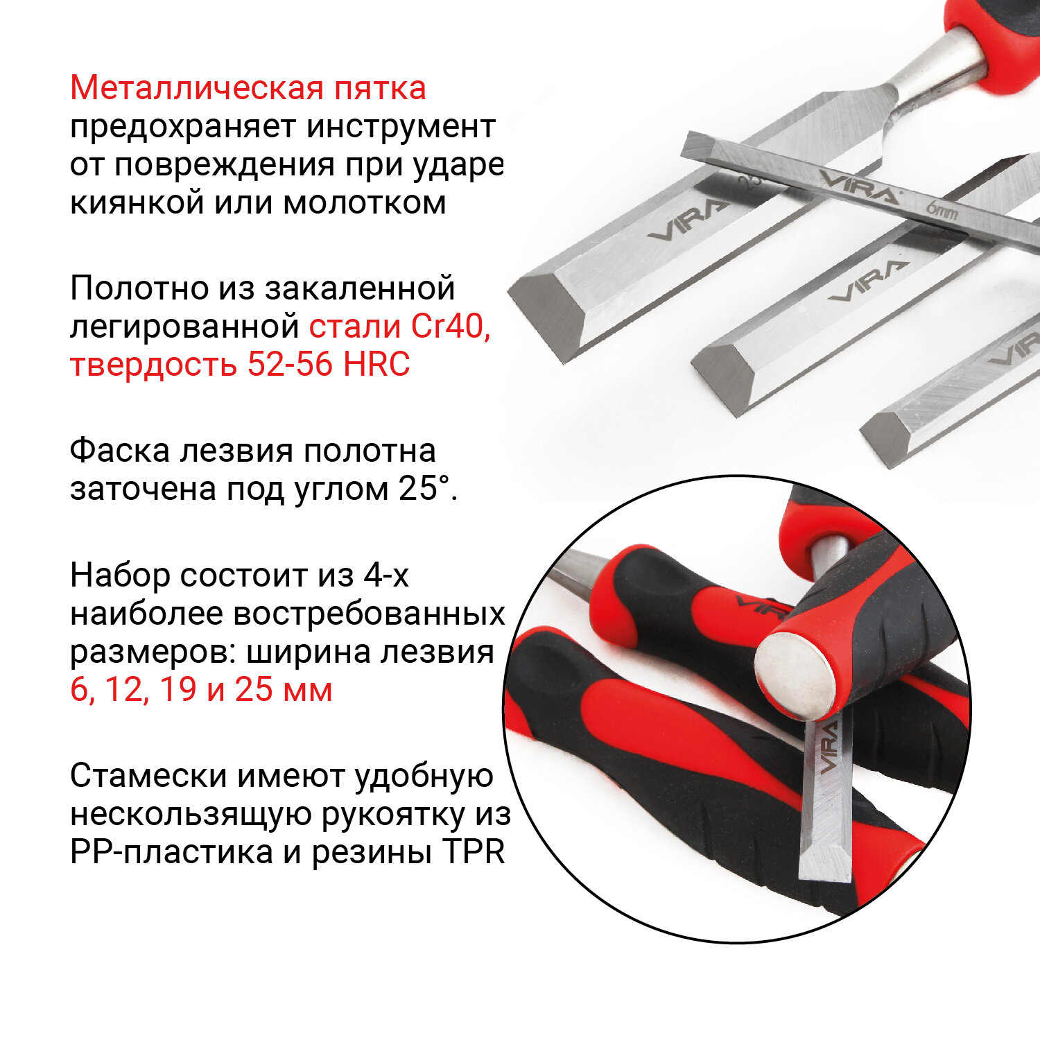 Набор плоских стамесок VIRA 4 шт: 6, 12, 19, 25 мм интересное:
