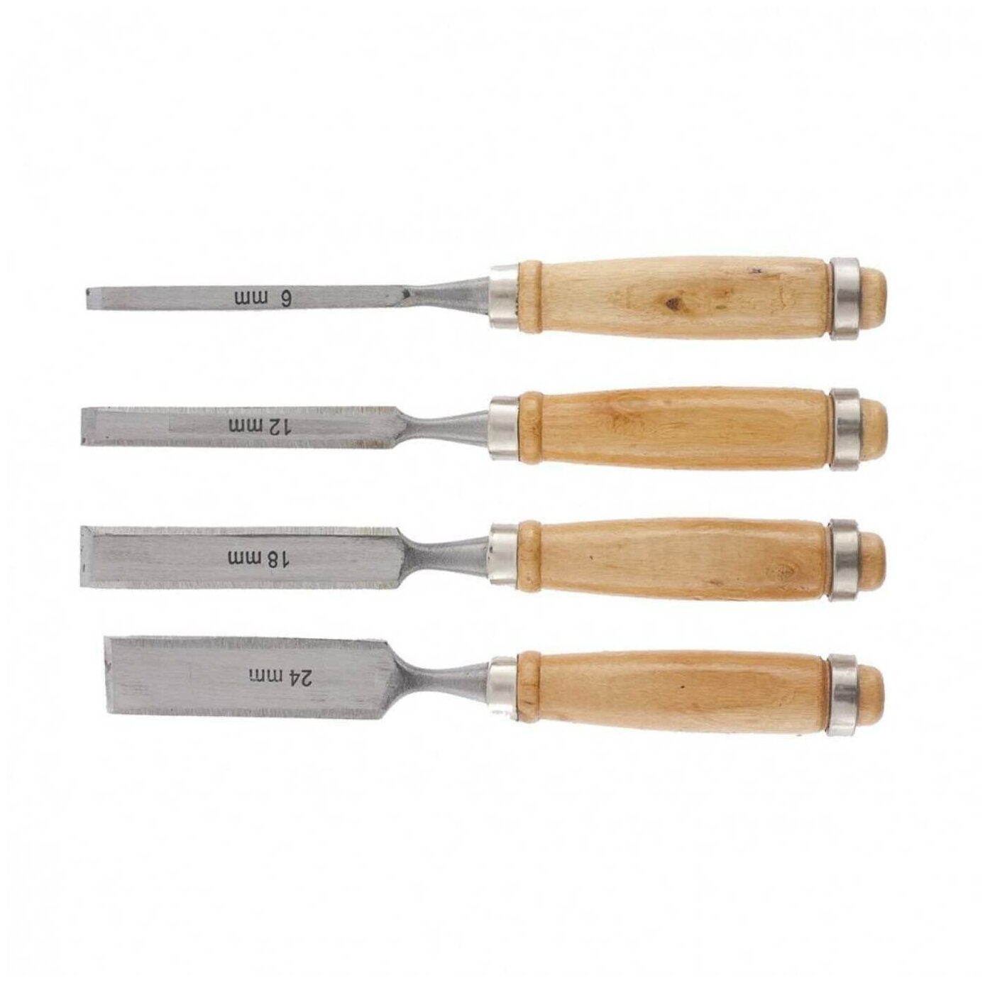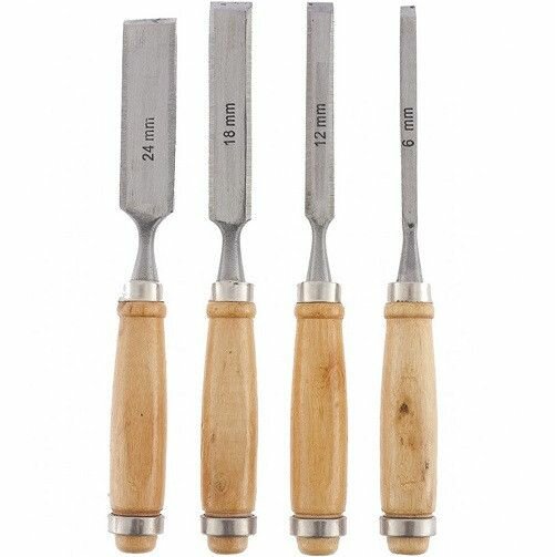 Набор долот-стамесок Sparta 6-12-18-24 мм, плоских, деревянные рукоятки 242405