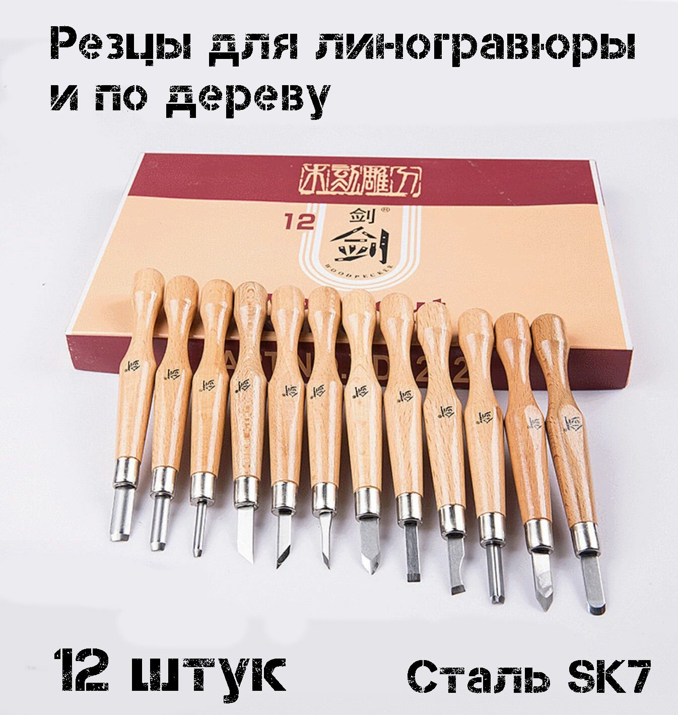 Набор резцов для линогравюры 12 шт , штихеля для ксилографии, стамески для эстампа интересное: