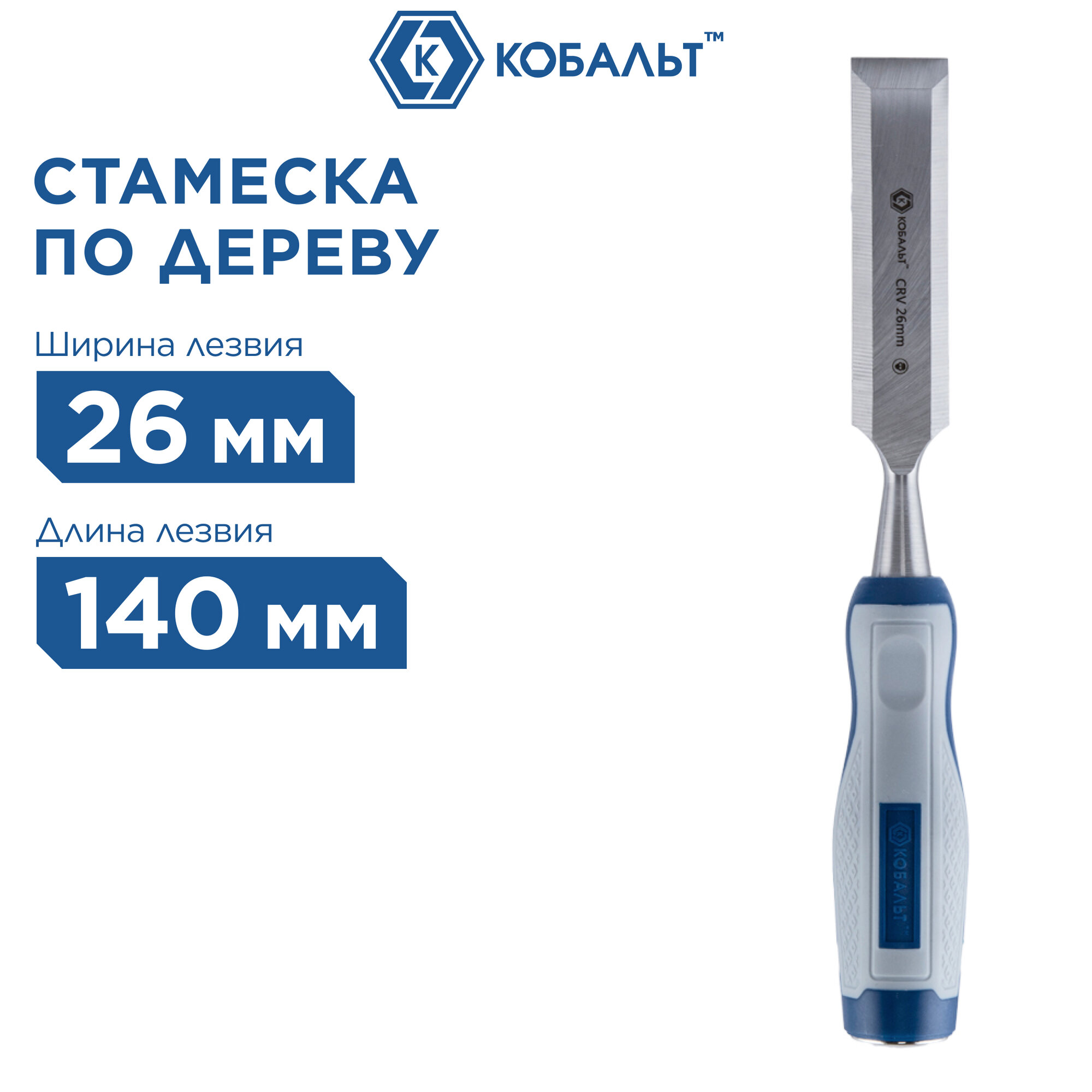 Купить Стамеска плоская кобальт 26 х 140 мм, CR-V, двухкомпонентная рукоятка (1 шт.) блистер (245-602)
