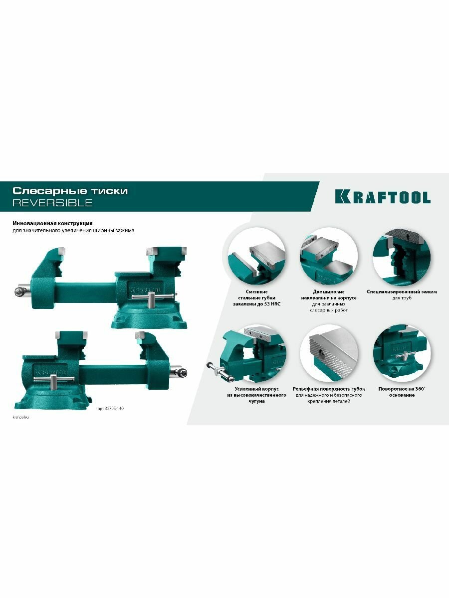 KRAFTOOL Reversible 140 мм, расход 273 мм, Слесарные тиски (32705-140)