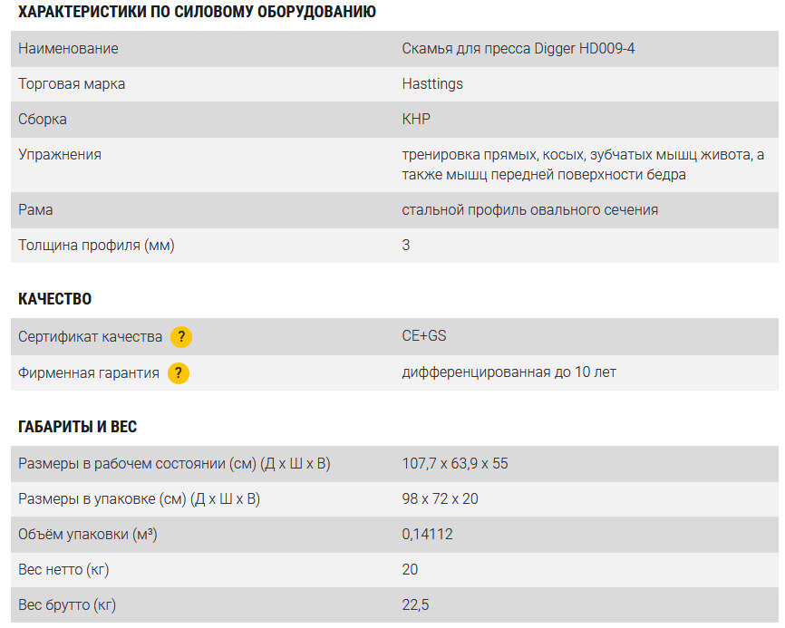 Скамья для пресса Hasttings Digger HD009-4 интересное: