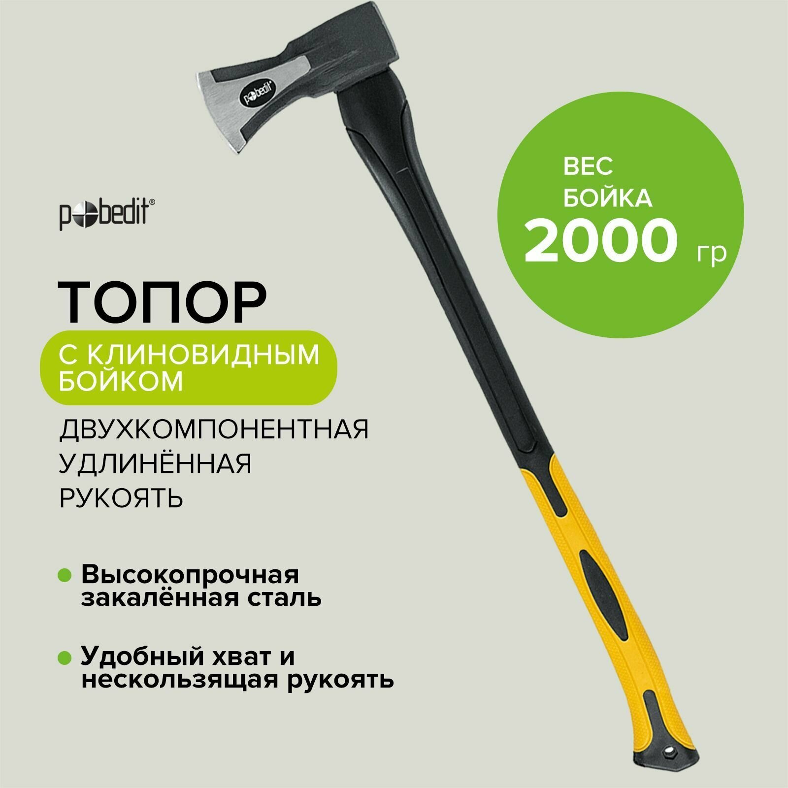 Топор-колун туристический клиновый с фибергласовой ручкой Pobedit 2000 грамм