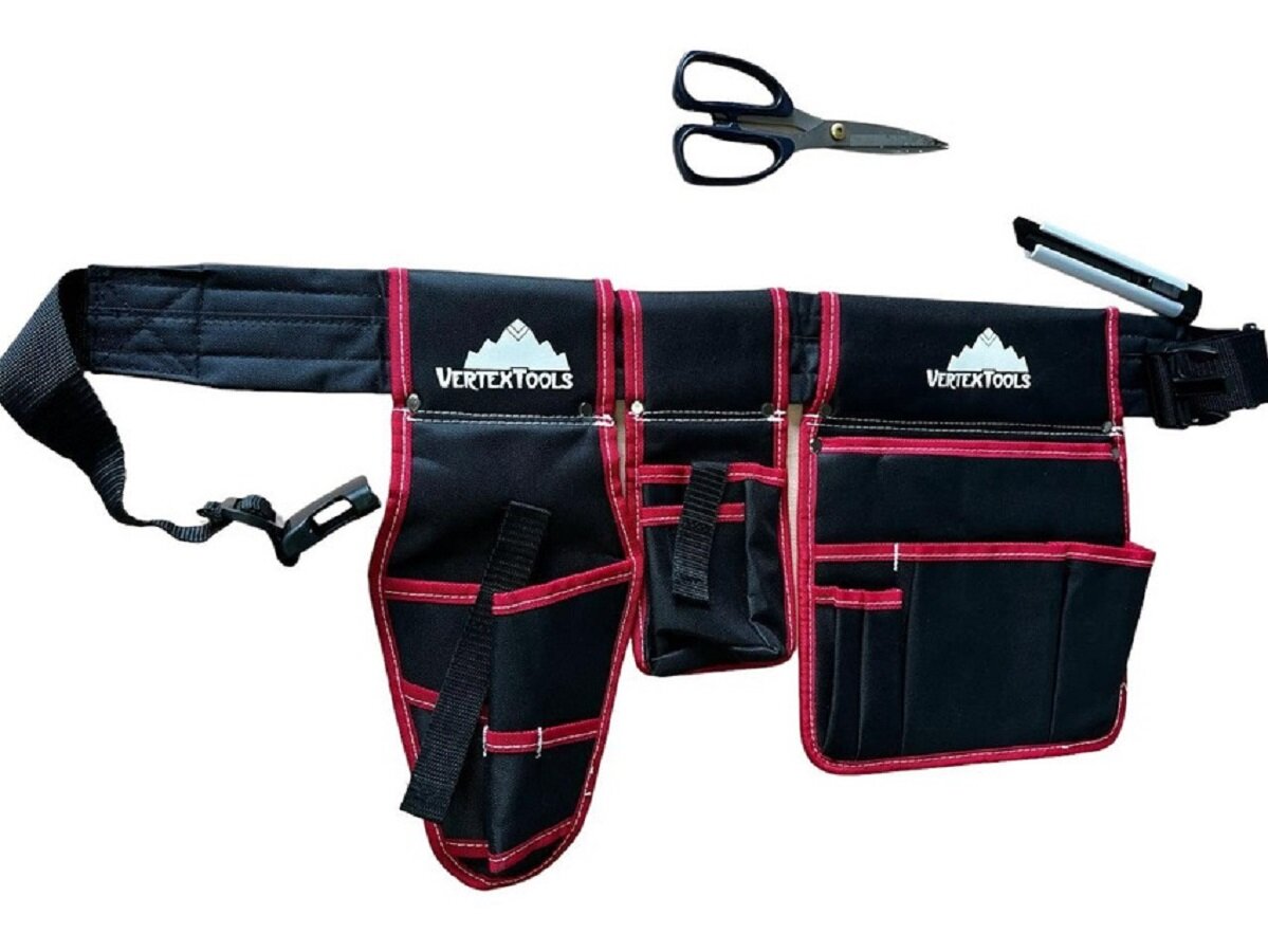 Сумка-пояс для инструментов универсальная строительная 28 карманов с держателем для молотка и рулетки