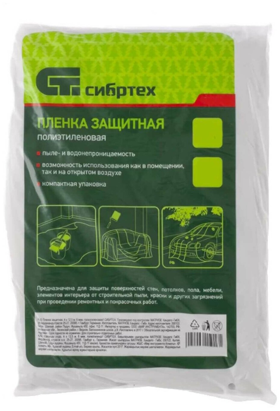 Купить Пленка полиэтиленовая для малярных и строительных работ Сибртех 3 х 4 м, 100 мкм 88767