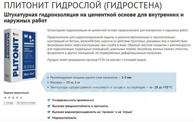 Ниже Вы можете прочитать отзывы на Гидроизоляция Plitonit Гидрослой 5кг, ознакомится с подробными характеристиками, посмотреть интересные обзоры и фотографии на Гидроизоляция Plitonit Гидрослой 5кг.