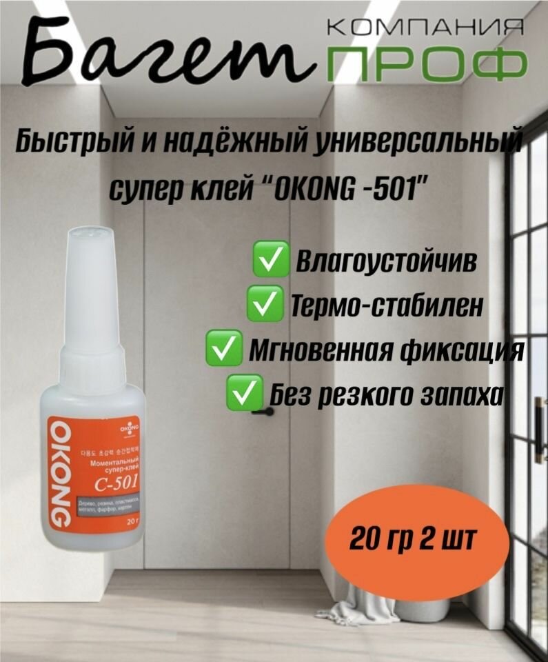 Супер клей секундный прозрачный универсальный, моментальный строительный оконг цианокрилатный "OKong" C-501, 2 шт