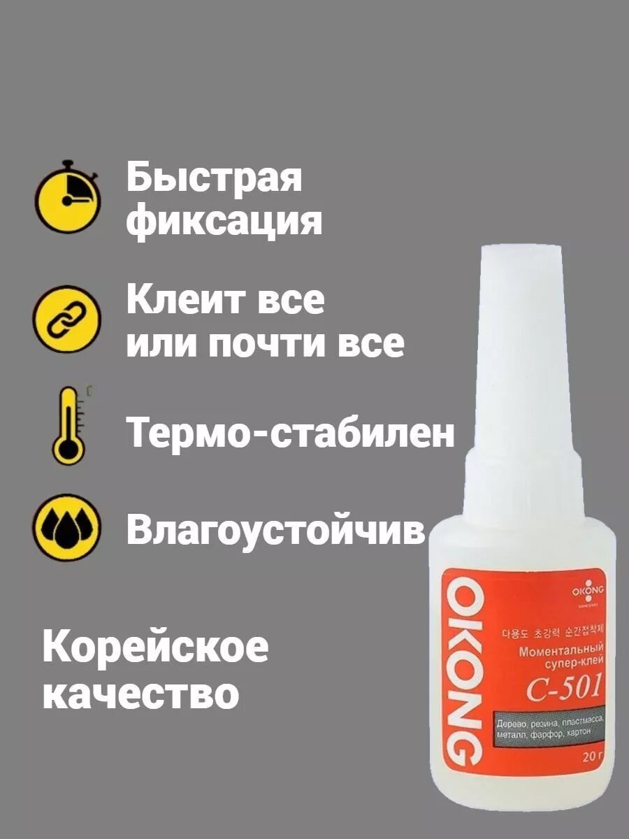 OKONG Моментальный Супер-клей 20g C-501 (дерево,резина,пластмасса,металл,фарфор,картон) 5 единиц